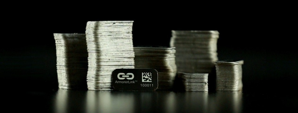 Mil-Spec. Asset Label Data Matrix Annealed Aluminum 0.60” W x 0.30” Branded ArmorerLink Logo, 100 label pack, sequentially numbered.